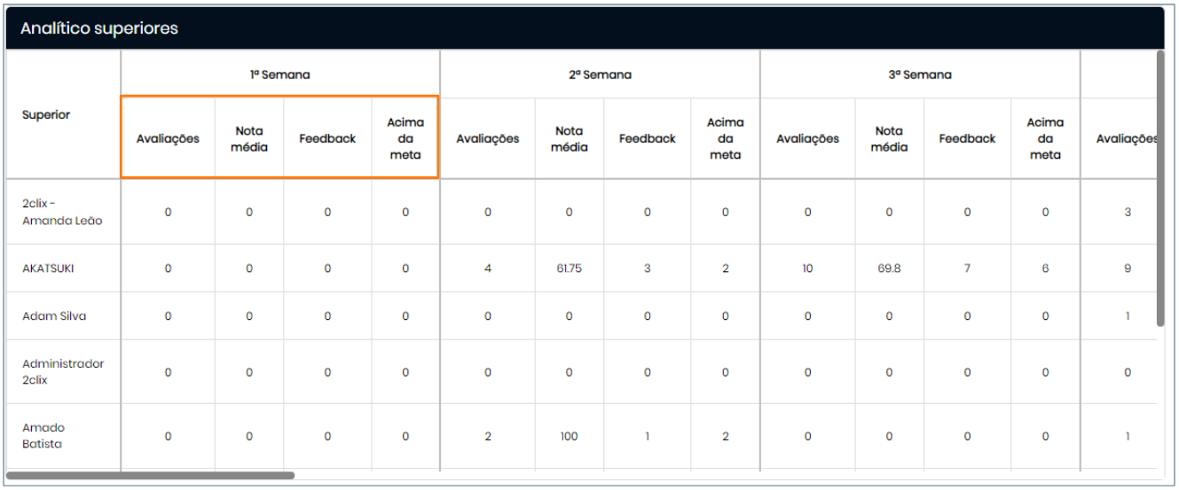 O objetivo principal dessa seção é fornecer uma visão clara do desempenho dos superiores em relação às metas estabelecidas.