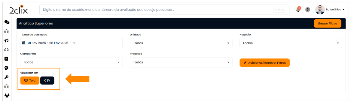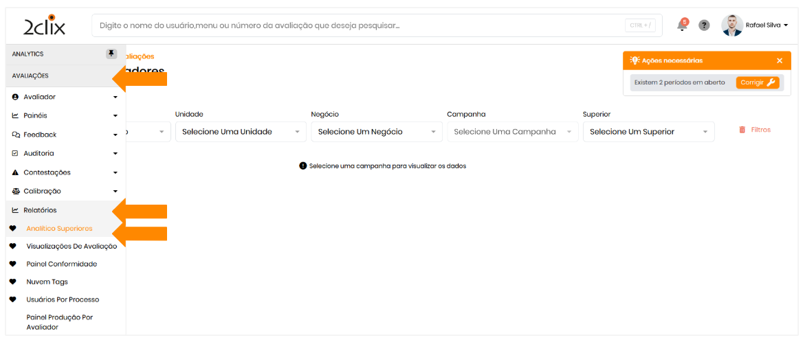 - No menu lateral esquerdo, acesse: Avaliações > Relatórios > Analítico Superiores.