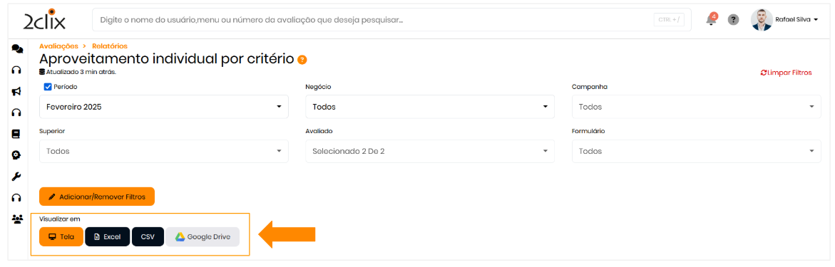 - Exportação → Extraia os dados nos formatos Excel, CSV ou Google Drive para análises mais elaboradas.