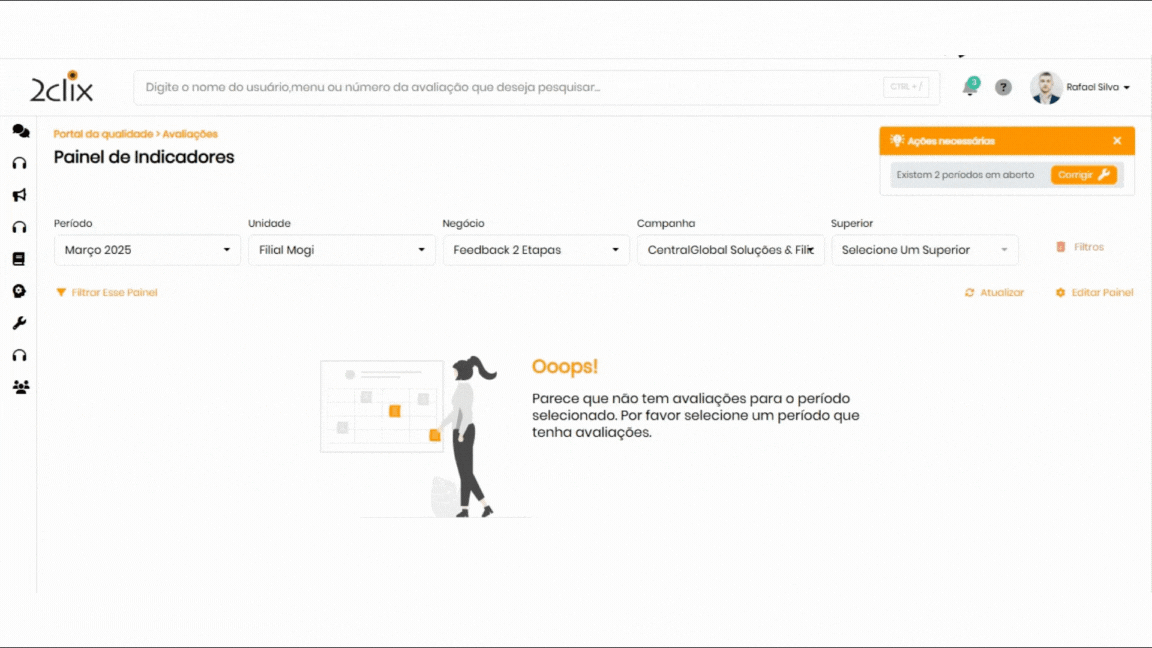 - Utilize os filtros disponíveis para localizar a avaliação desejada.