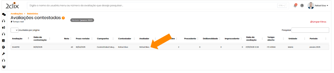 ⚠️ Clique em uma linha do relatório para abrir o formulário da avaliação contestada e visualizar mais detalhes!