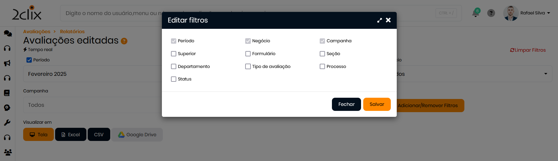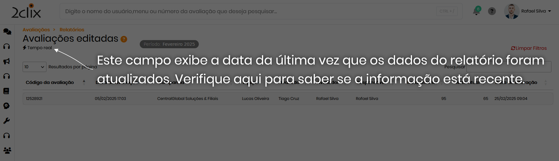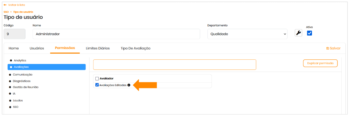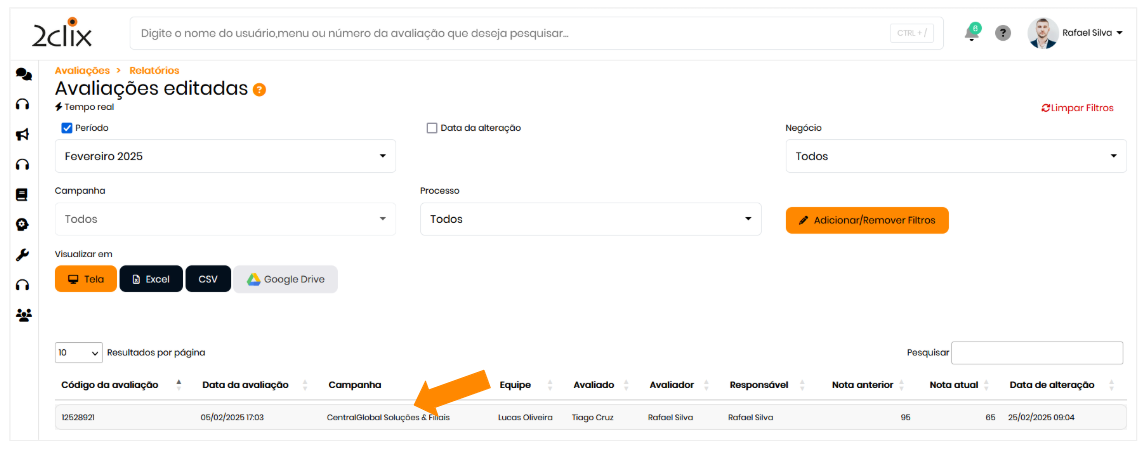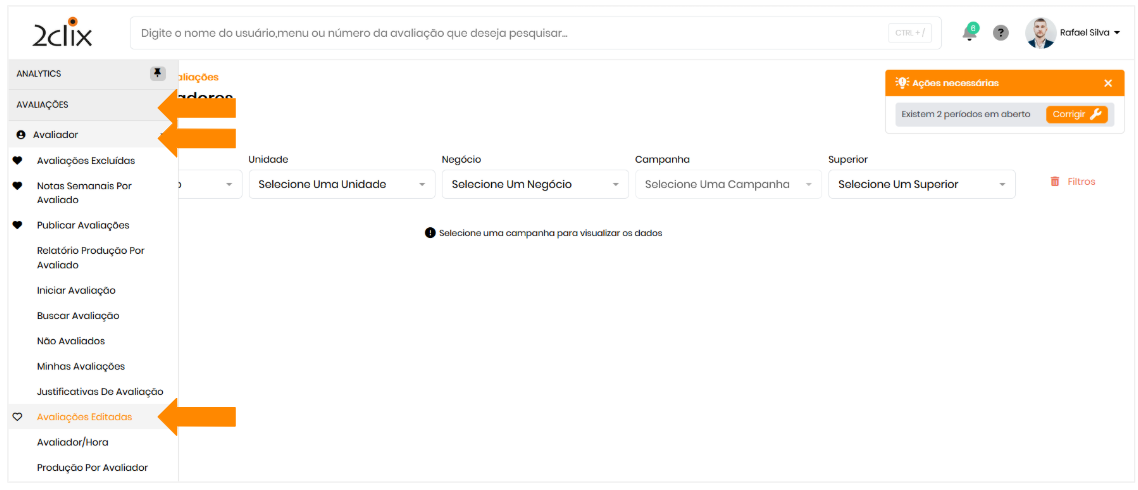 - No menu lateral esquerdo, acesse: Avaliações > Avaliador > Avaliações Editadas.
