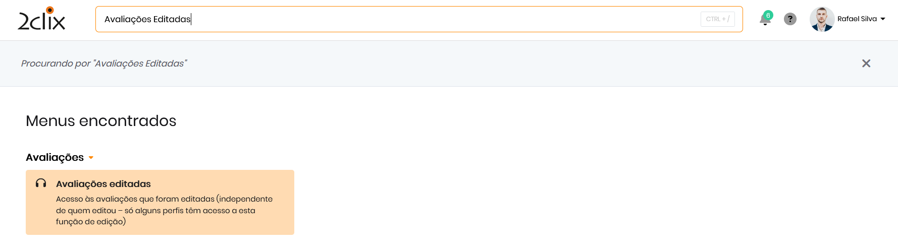- Digite "Avaliações Editadas" e selecione o resultado correspondente para ser direcionado diretamente ao relatório.