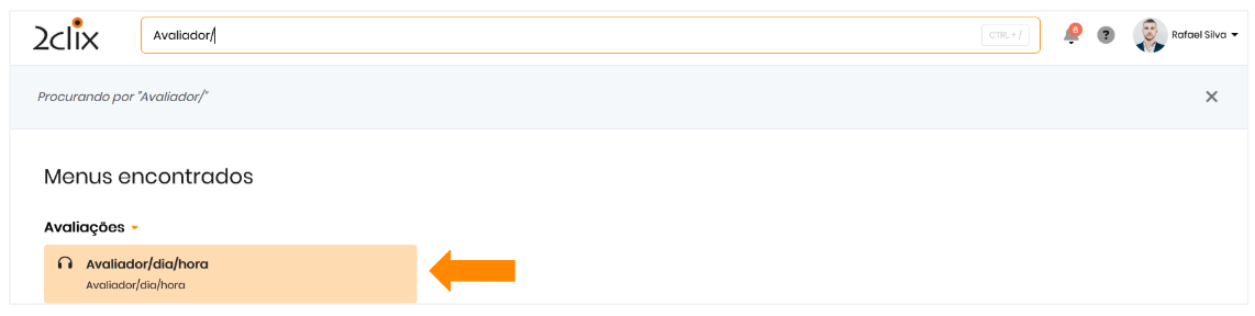 - Digite "Avaliador/Dia/Hora" e selecione o resultado correspondente para ser direcionado diretamente ao relatório.