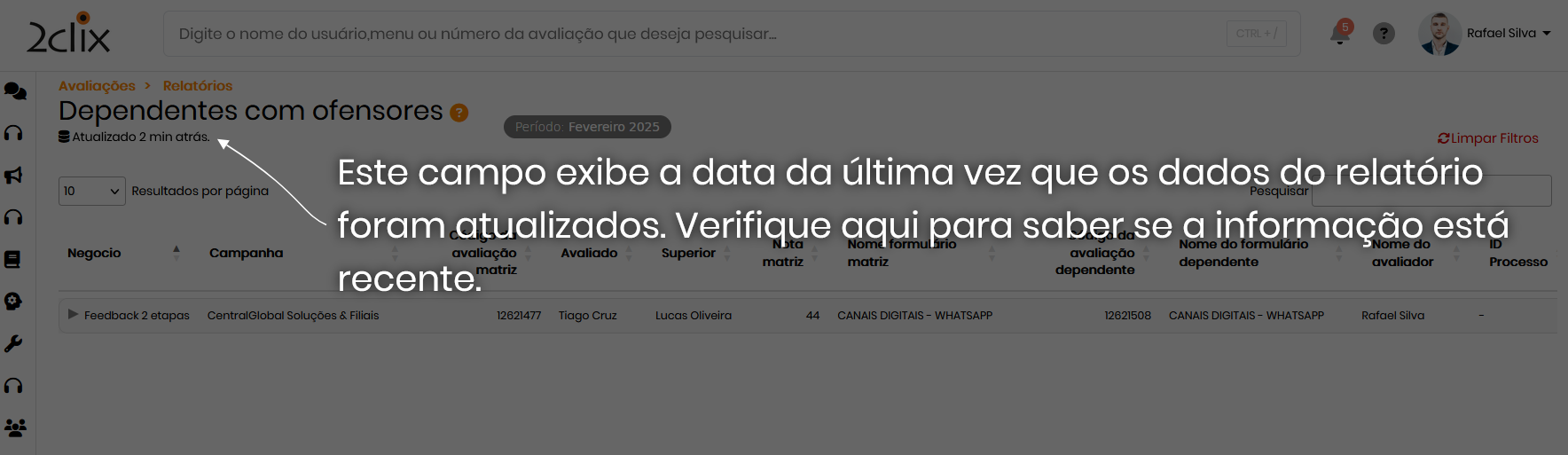 ⚠️Por que só um avaliador por vez? Para garantir que as informações sejam apresentadas de forma clara e objetiva, esse relatório é gerado para apenas um avaliador por vez. Assim, você consegue visualizar o histórico completo sem confusão de dados.