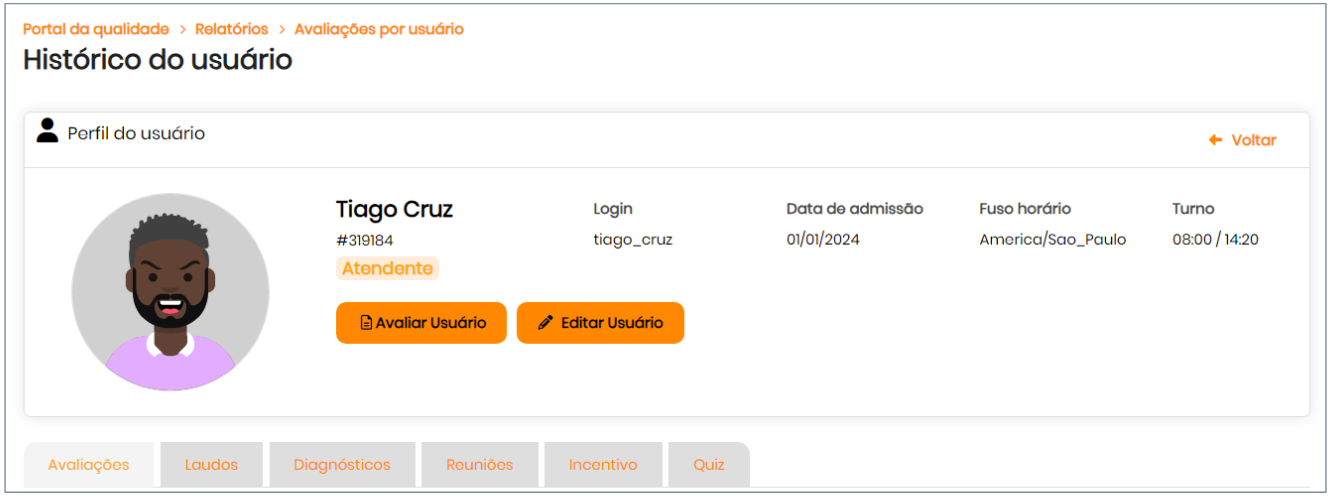 Avaliado: Exibe o desempenho individual, direcionando para o histórico do usuário ao clicar no nome.