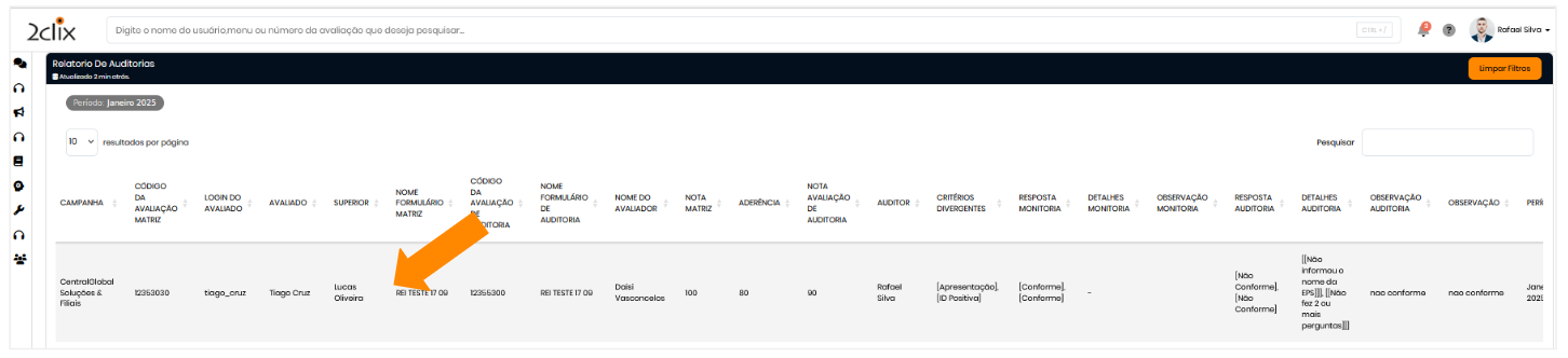 - Superior: Hierarquia do usuário avaliado.