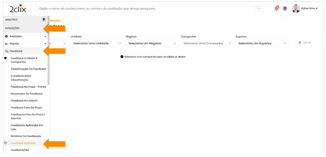 💡 Como acessar o relatório de feedbacks aplicados?
