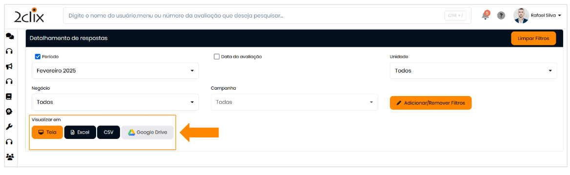 - Exportação → Extraia os dados nos formatos Excel, CSV ou Google Drive para análises mais elaboradas.