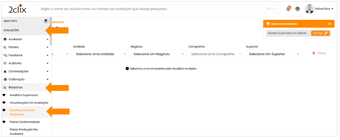 Você pode acessar o relatório "Detalhamento de Respostas" de duas formas:
