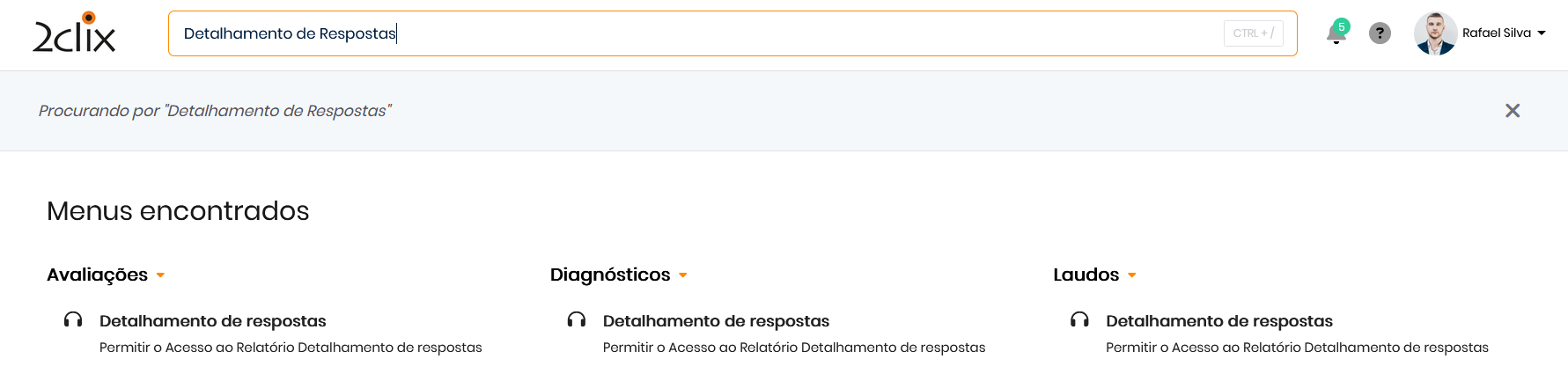 - Digite "Detalhamento de Respostas" e selecione o resultado correspondente para ser direcionado diretamente ao relatório.