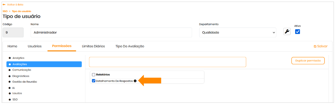 Diagnóstico: Portal da Qualidade > Diagnóstico > Relatórios > Detalhamento de Resposta