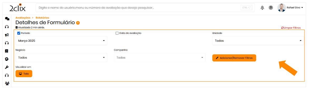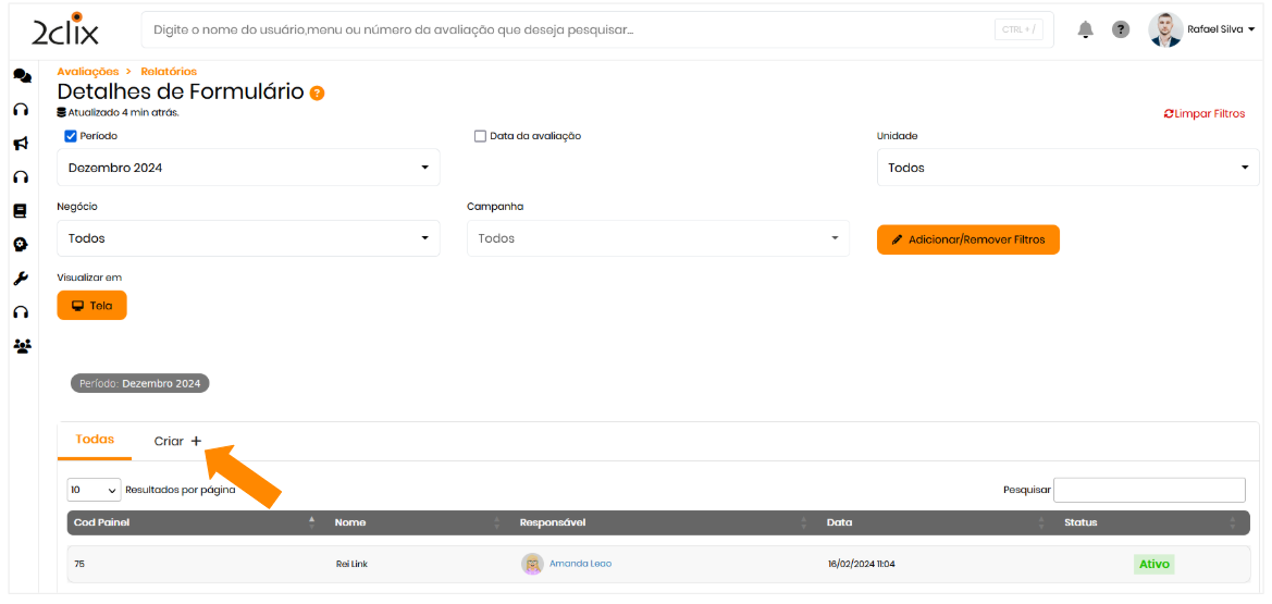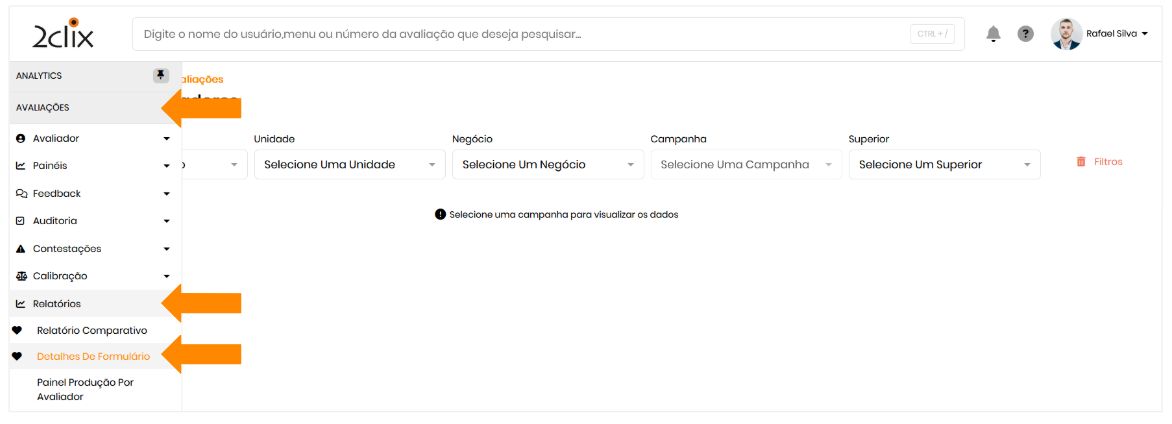No menu lateral, clique em Avaliações > Relatórios > Detalhes de Formulários.