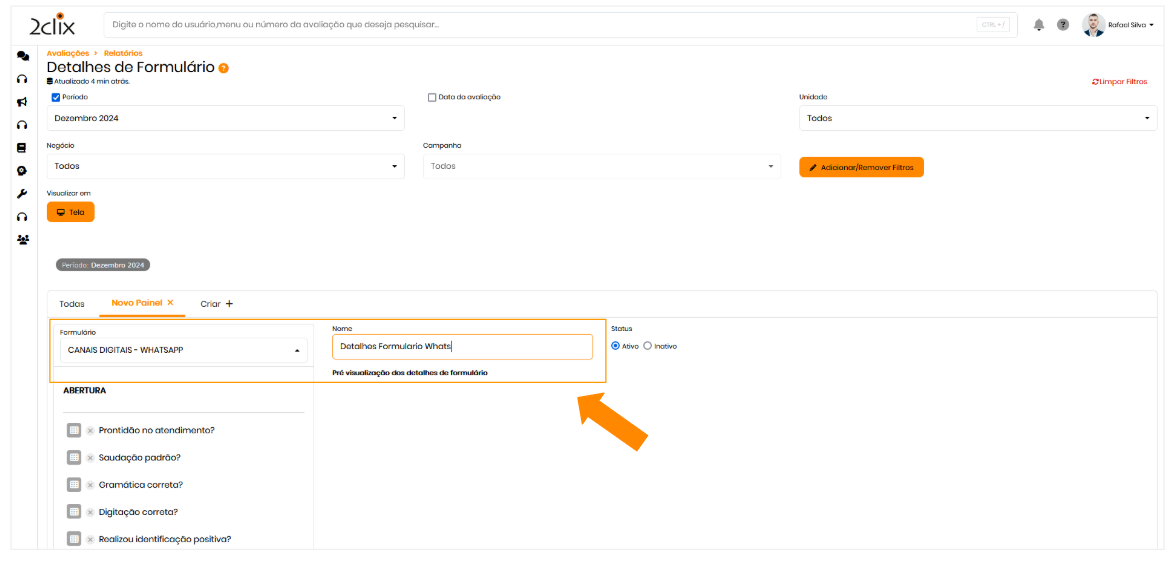 Se estiver criando um novo painel, selecione o formulário que deseja utilizar.