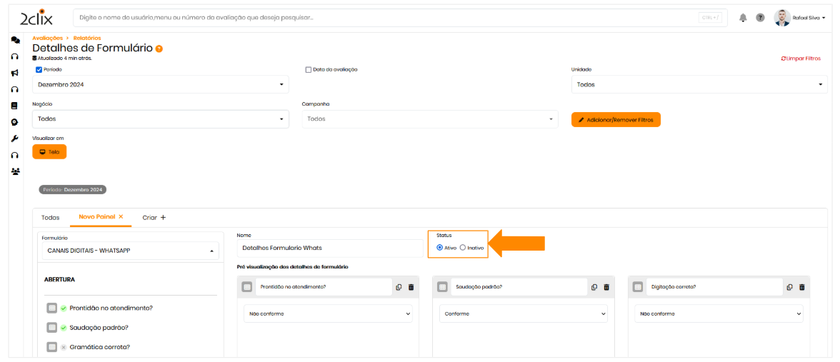 O status do painel estará ativo automaticamente, mas pode ser inativado futuramente, se necessário.