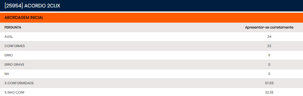 % Conformidade: Percentual de conformidade baseado nos acertos.