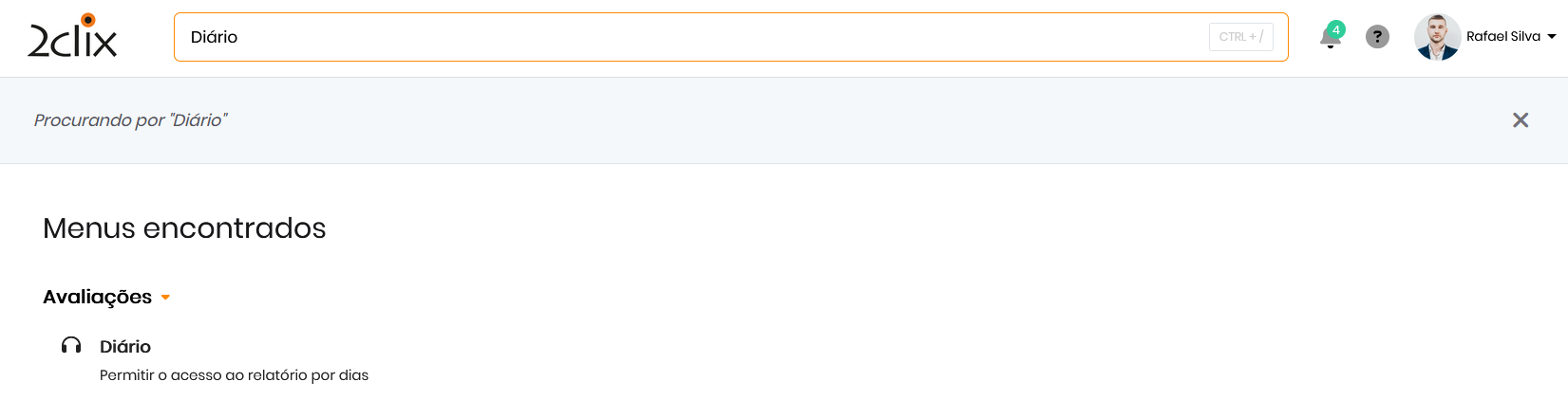 - Digite "Diário" e selecione o resultado correspondente para ser direcionado diretamente ao relatório.