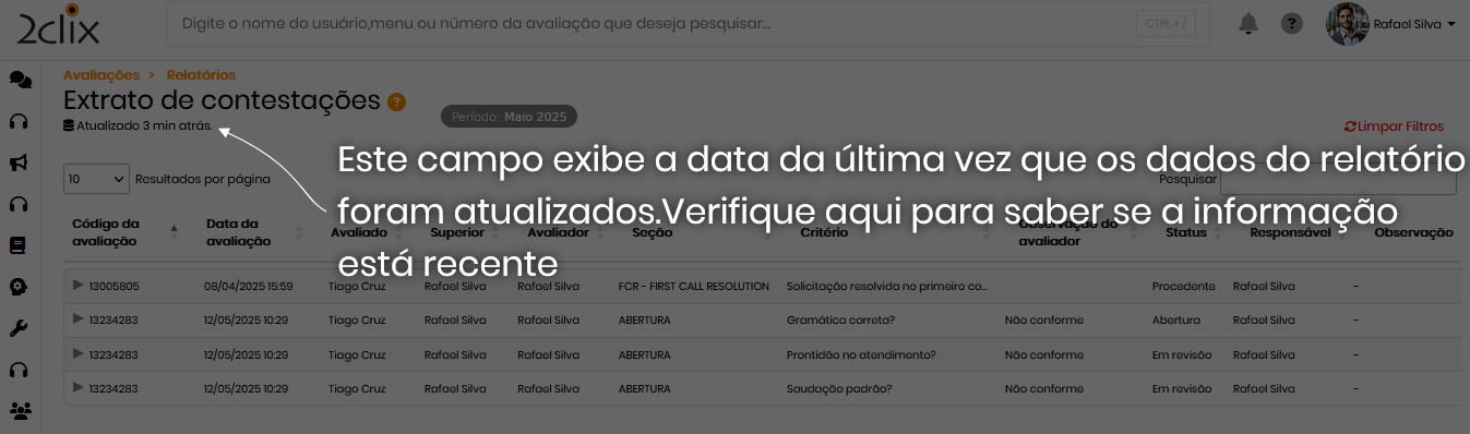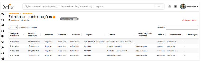 - Acione: Avaliações>Contestações >Extrato de Contestações.