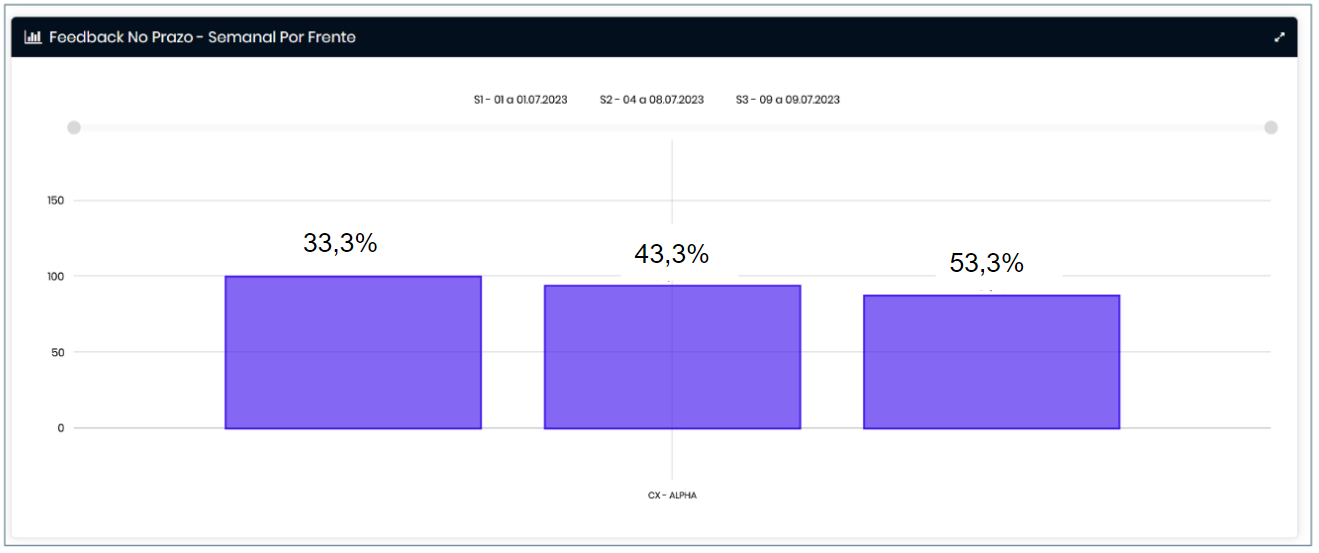 Traz uma visão semanal da entrega dos feedbacks para cada frente de trabalho.