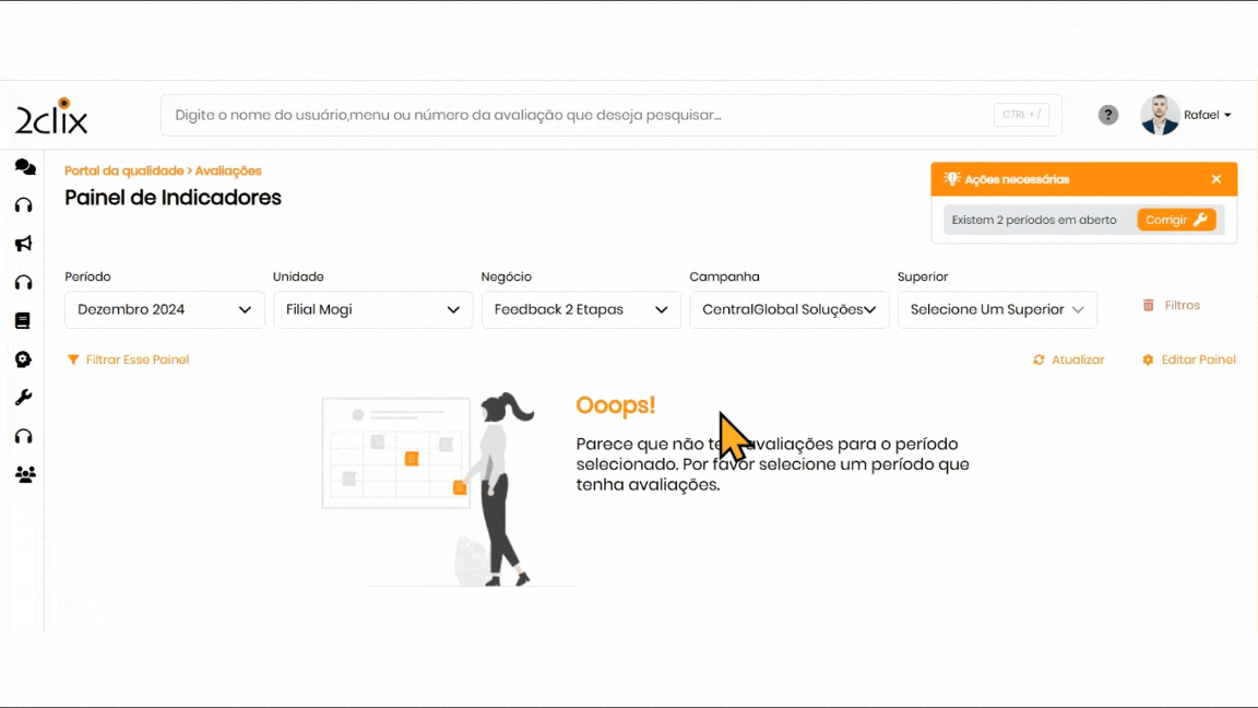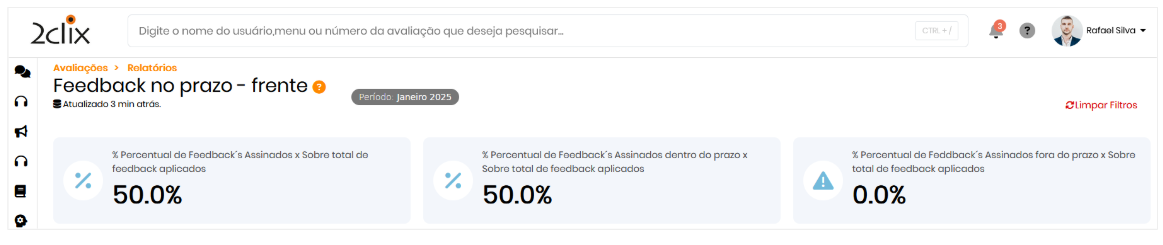 - No menu lateral esquerdo, acesse: Avaliações> Feedback > Feedback no Prazo (Frente) .