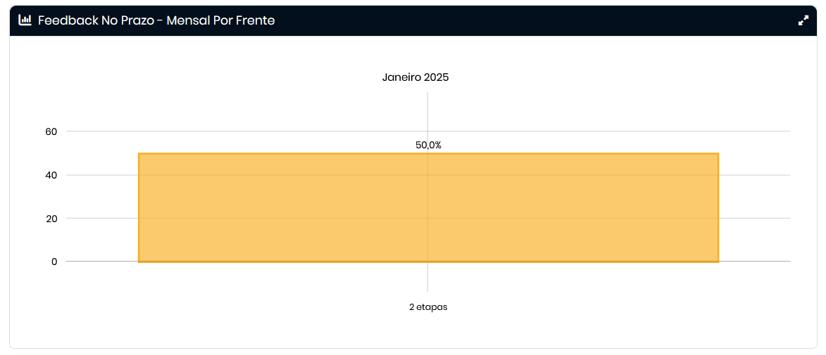 Exibe a pontualidade dos feedbacks em cada frente de trabalho ao longo do mês.