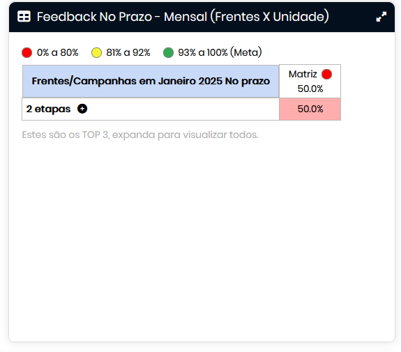 Permite acompanhar a pontualidade dos feedbacks em cada Unidade, semanalmente.