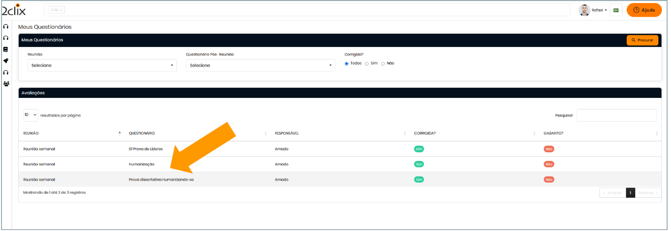 - No campo de busca digitando Questionários Corrigidos
