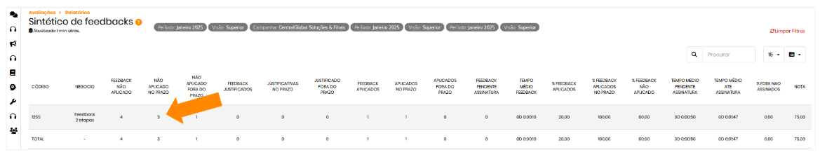 Feedback não aplicado: Total de feedbacks ainda não aplicados (dentro ou fora do prazo).