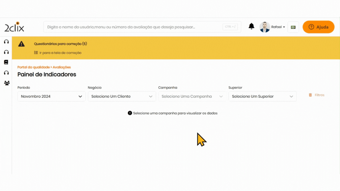 Na parte superior do relatório, estão disponíveis filtros que permitem a personalização conforme o objetivo da análise: