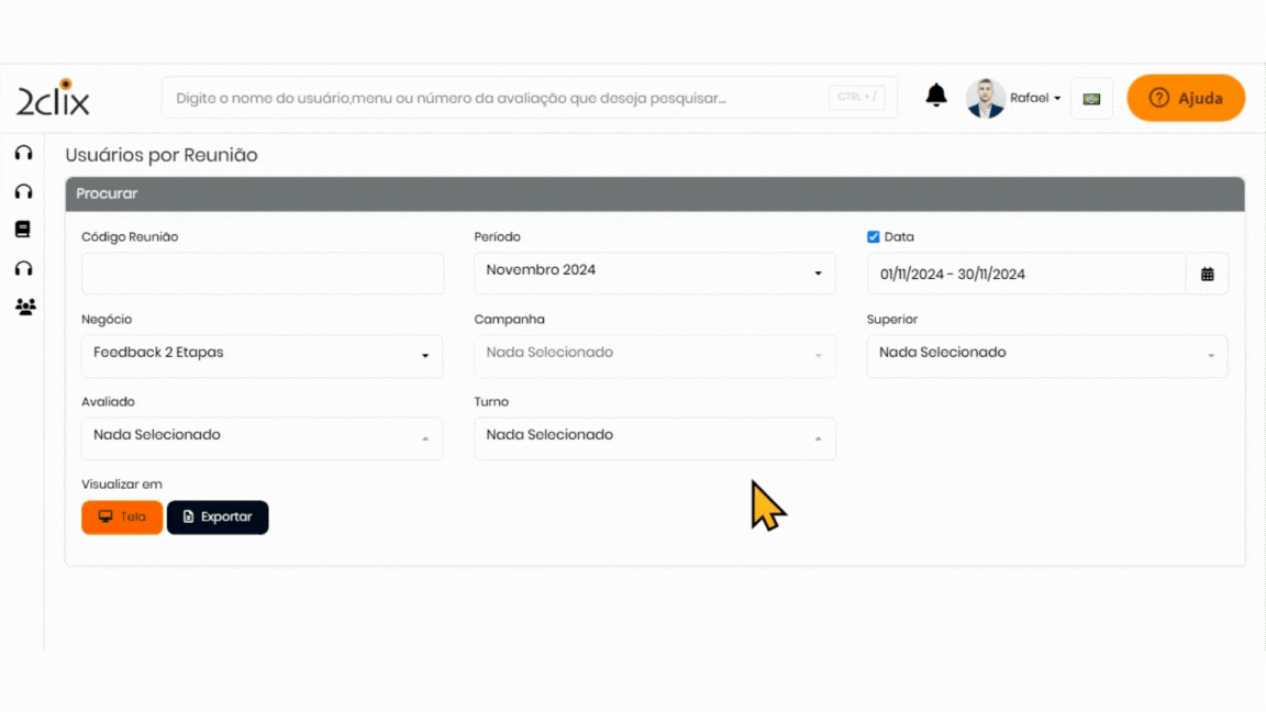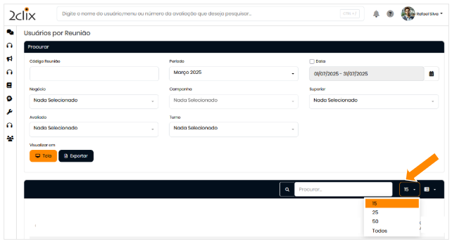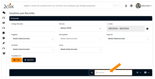 - Avaliado: permite filtrar pelo nome do usuário que participou da reunião