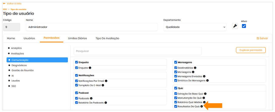 ⚠️ Dica: Configuração de Permissões para Visualização de Resultados de Quizzes por Hierarquia