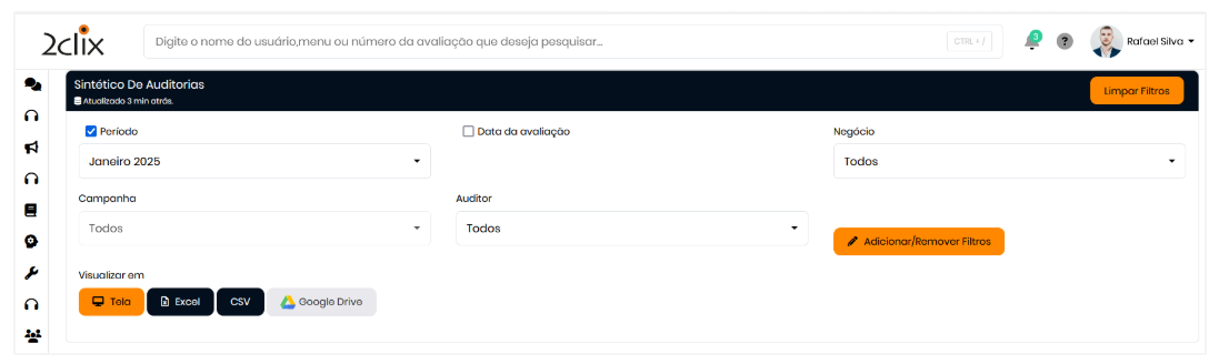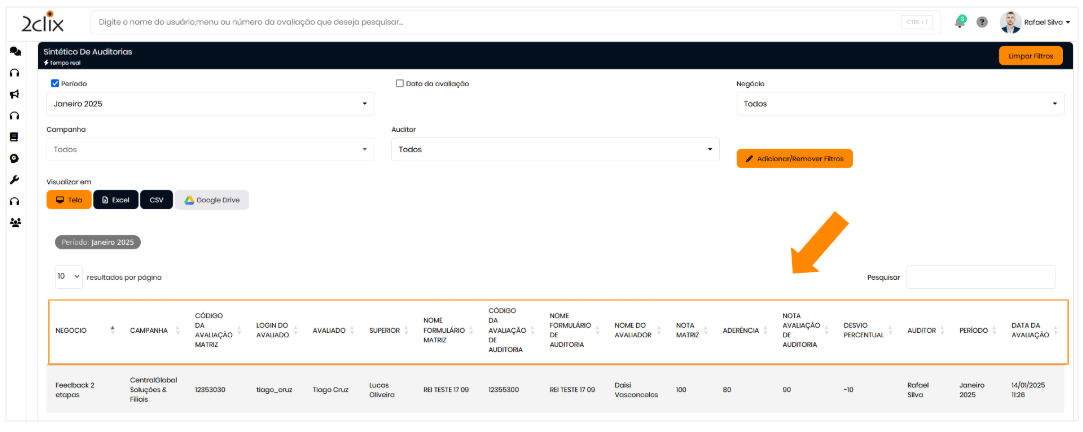 Passo a passo- No menu lateral esquerdo, acesse: Avaliações > Auditoria > Sintético de Auditoria.