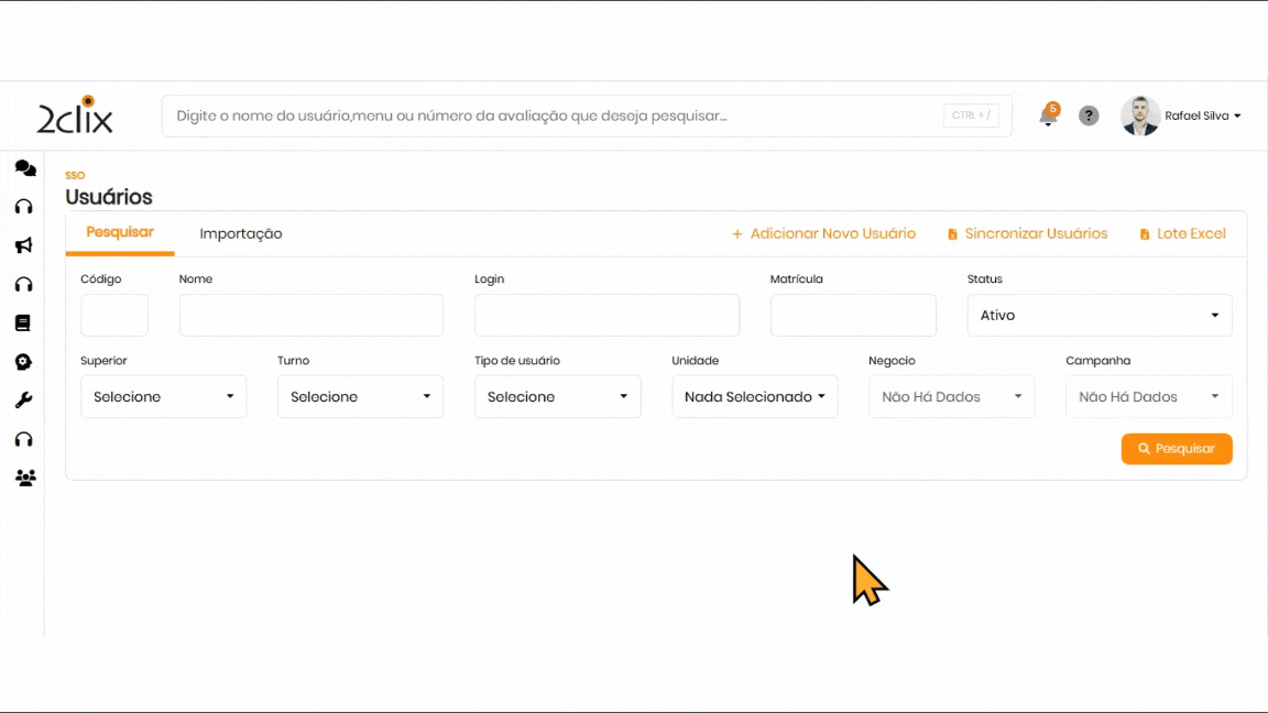 No menu lateral esquerdo, acesse SSO > Cadastros > Usuários.