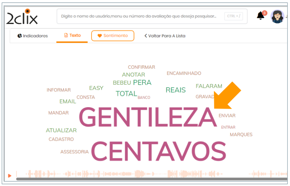 Um vez cadastrada, uma palavra será eliminada da nuvem de palavras.