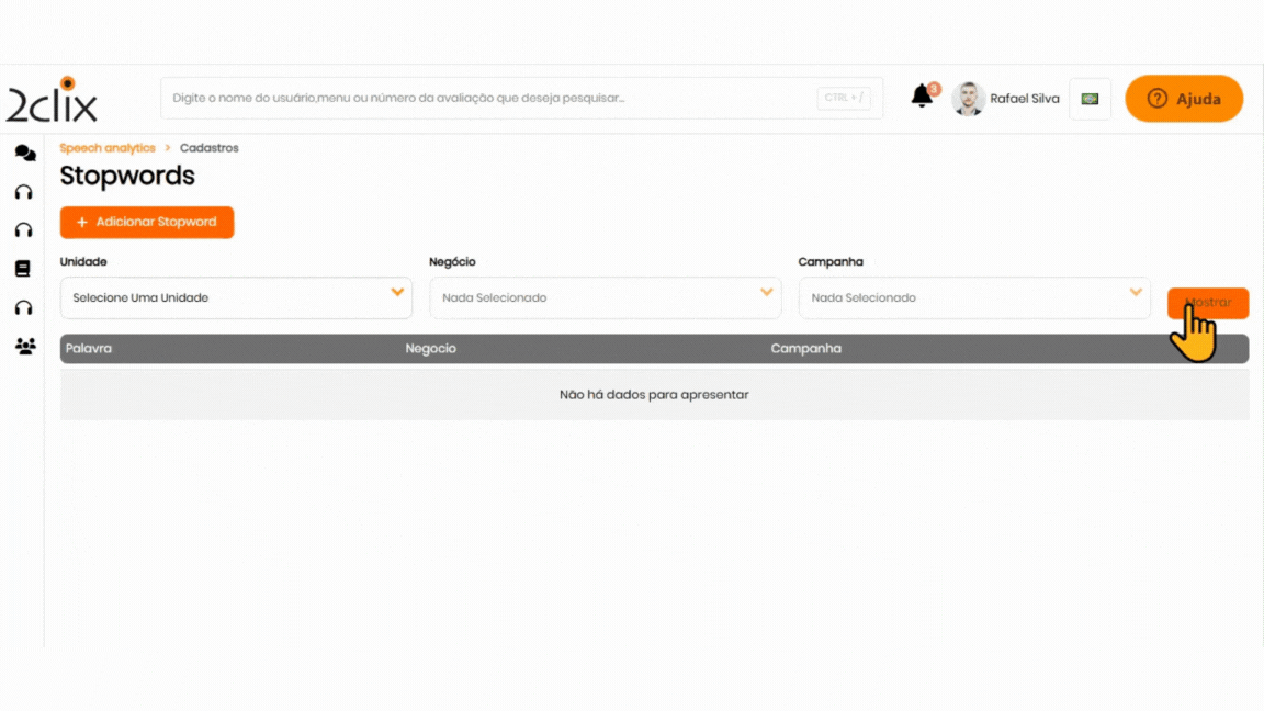 Utilize os filtros para localizar as StopWords já cadastradas e clique em Mostrar.