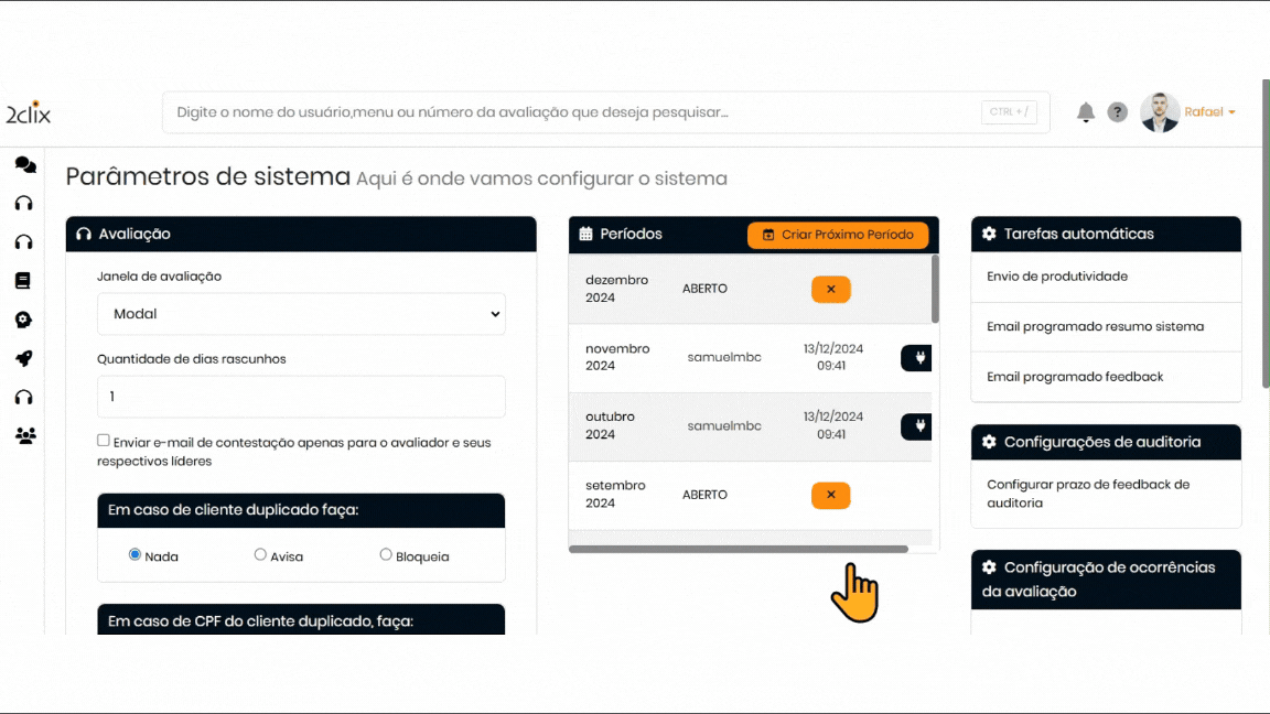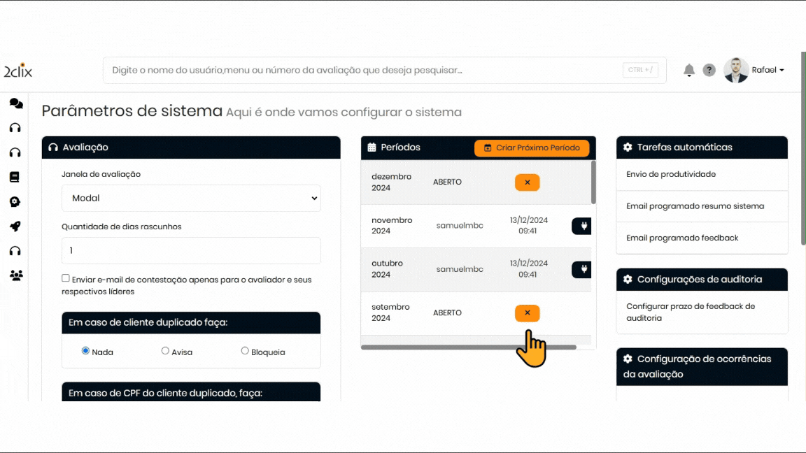 - Clique em Parâmetros de Avaliações (Personalização) e, em seguida, em Tarefas Automáticas.