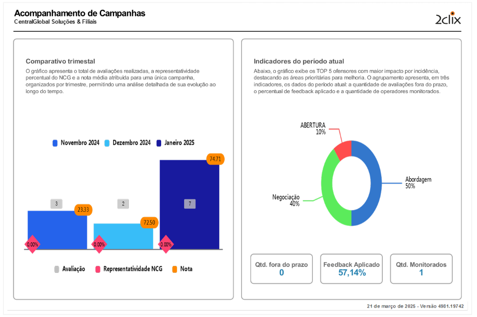 - Comparativo Trimestral: Este gráfico apresenta uma análise detalhada da evolução da campanha ao longo dos trimestres, permitindo a verificação do progresso e das áreas que necessitam de ajustes.