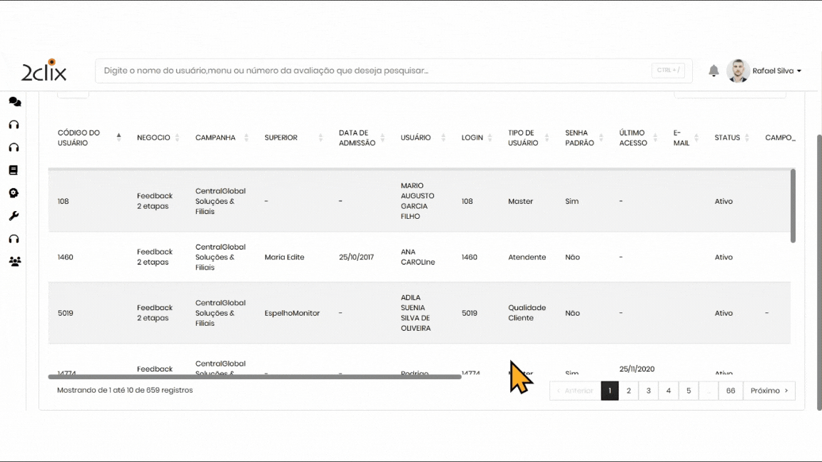 - Data de Admissão: Dados de admissão do usuário no sistema.