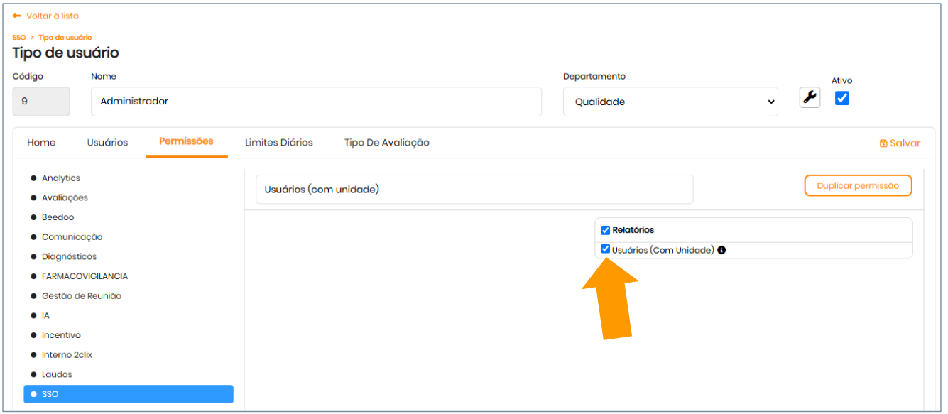 Para acessar este relatório, é necessário possuir a seguinte permissão: Usuários (Com Unidade)
